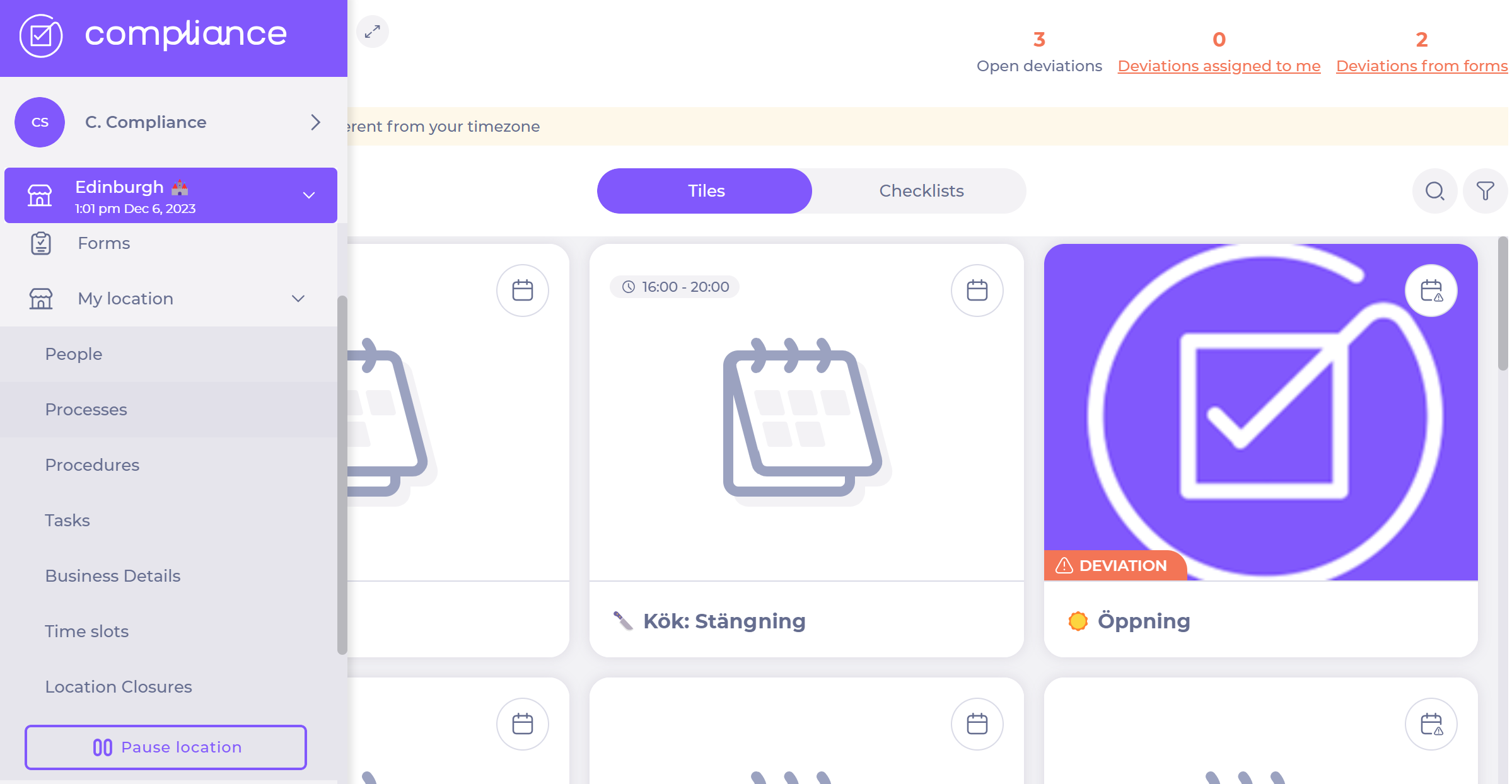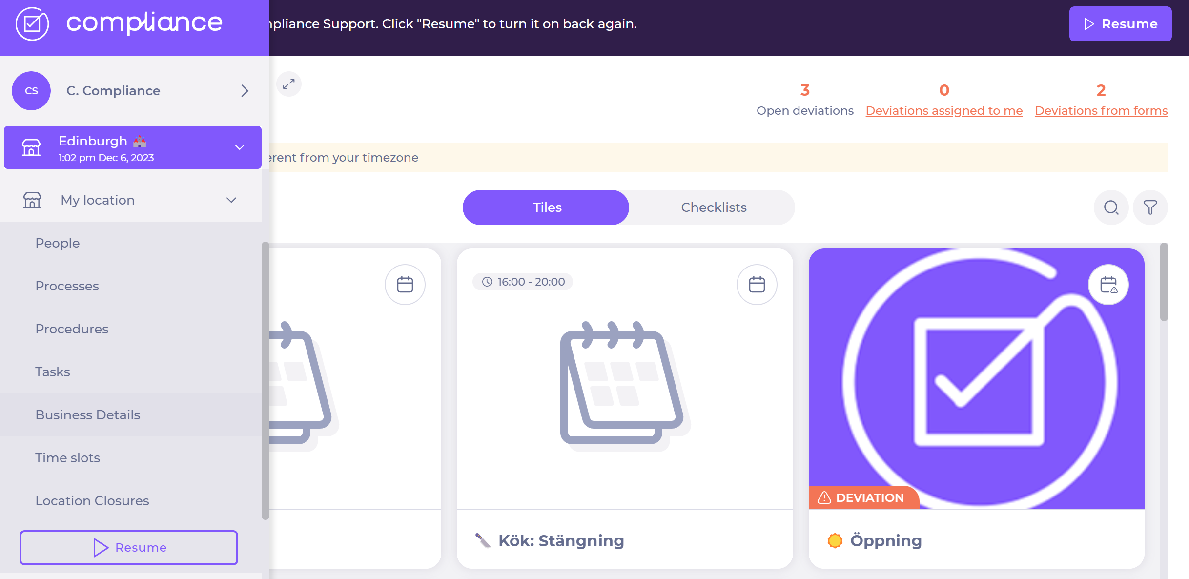 Tasks that appear during the closed period still need to be completed to avoid affecting your compliance score. Tasks that are scheduled - before the closure was added - do not automatically disappear from the plan.