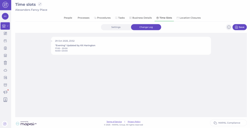 - A list with all changes made to your time slots will appear. Here, you will be able to see: