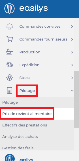 - Select the Management > Food cost price tabs.