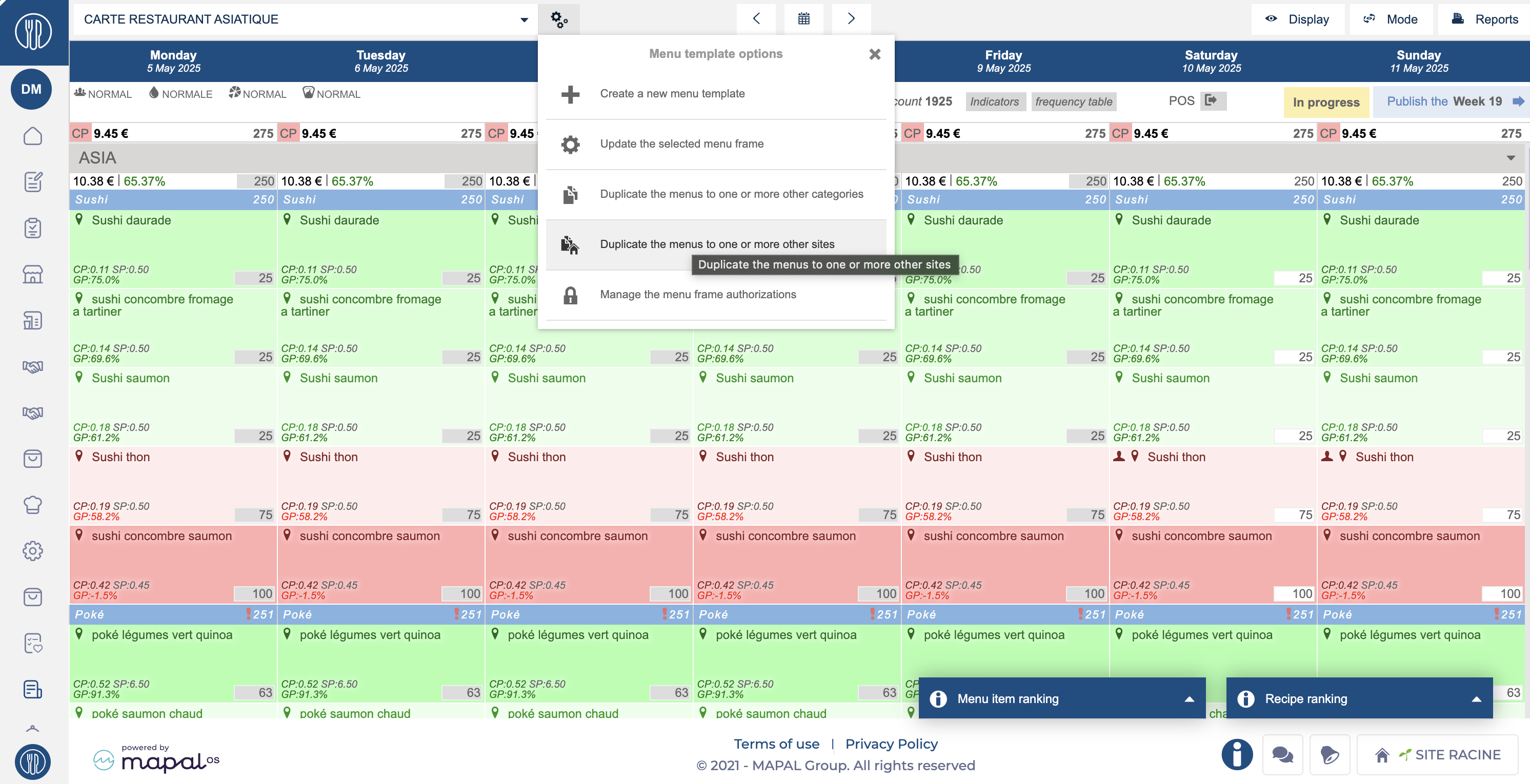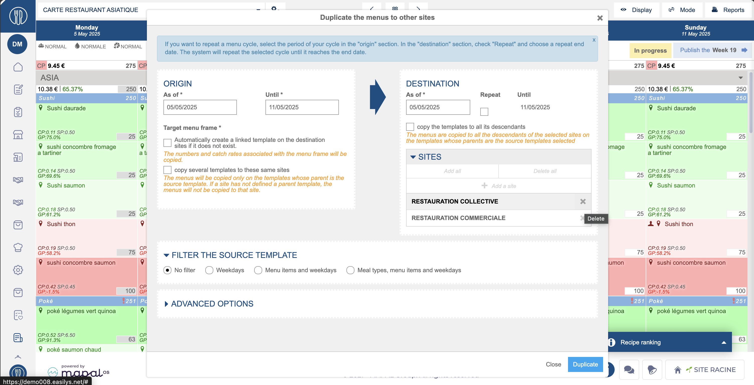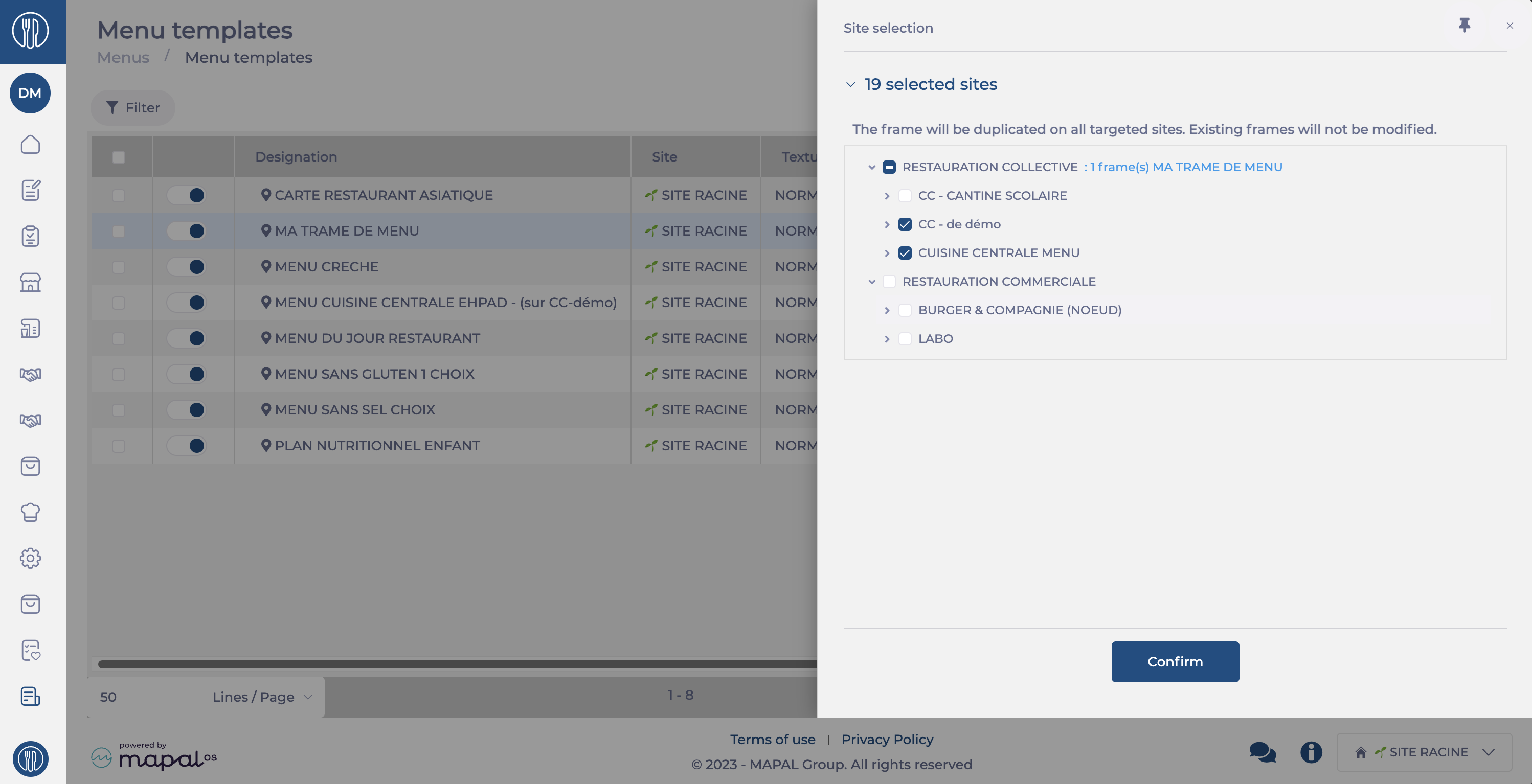 - Select the parent menu again and click Duplicate the menus to one or more sites.