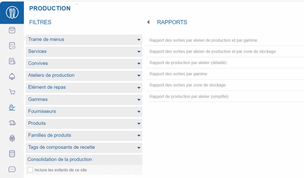 Production report by workshop (simplified): This report allows you to generate a document to download and/or print, listing for each workshop the recipes to be produced without specifying their composition.