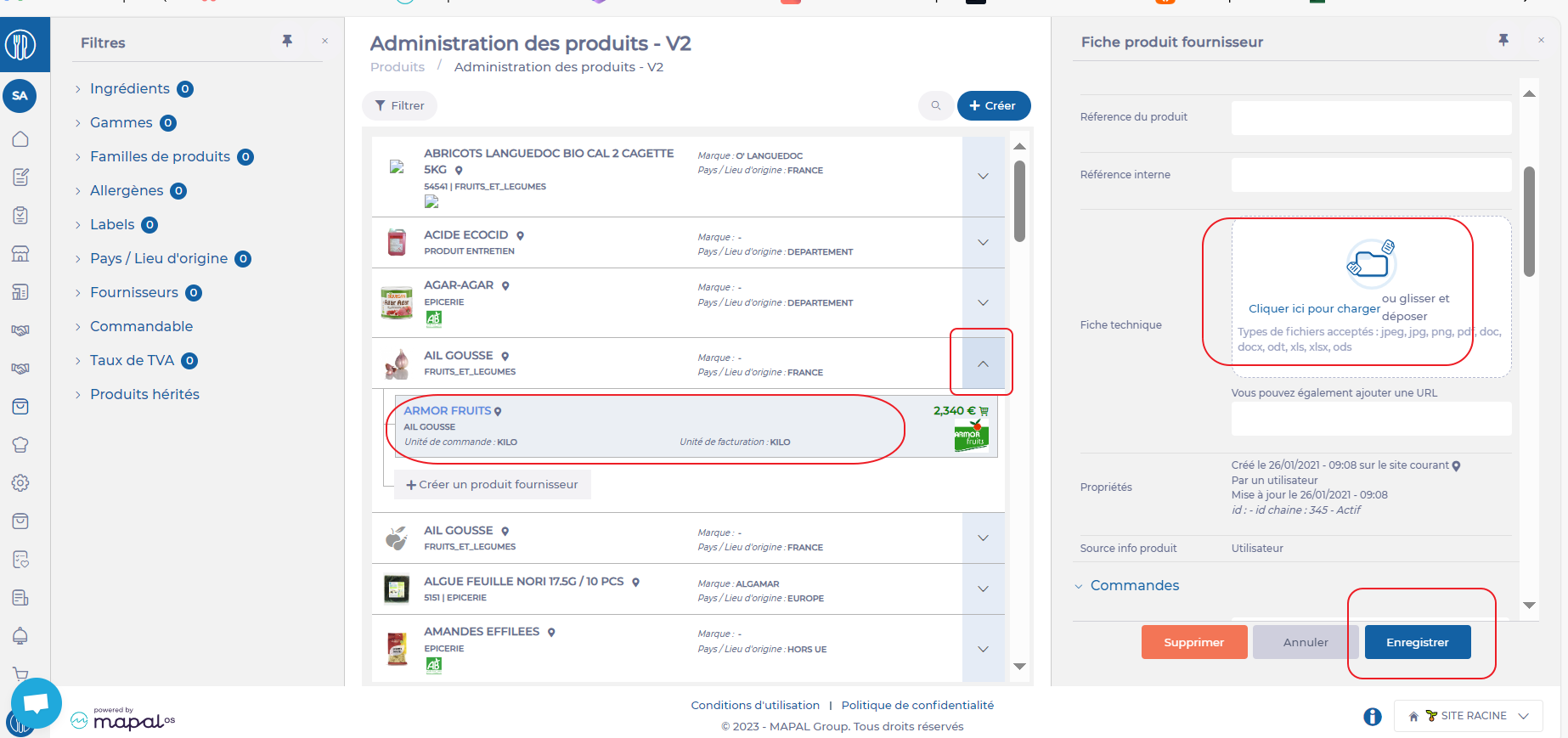 Once attached, the document can be consulted from the price list and the SUPPLIER ORDERS screen.