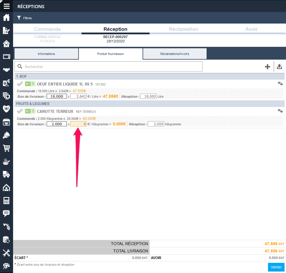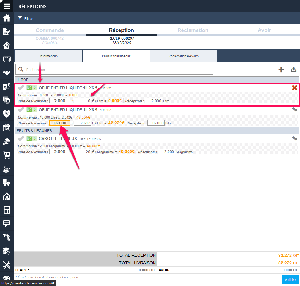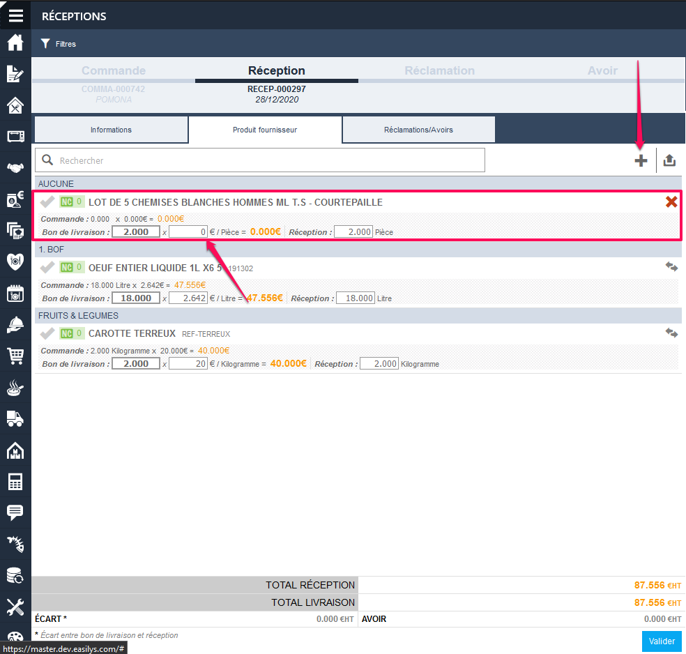 The product is added to the delivery note. This addition is highlighted, as this new line can be deleted with the red cross.