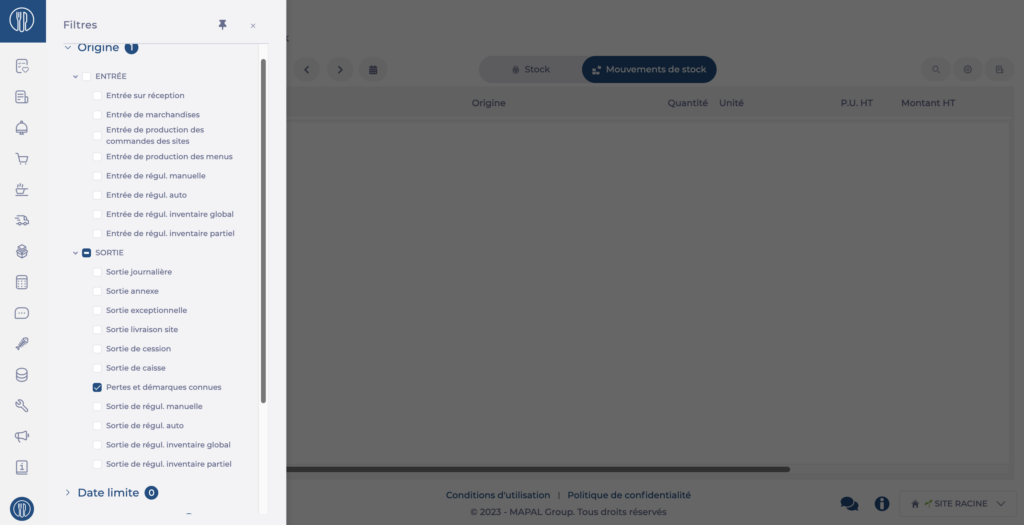 - Target a movement with the origin Known losses and markdowns using the filter if needed.