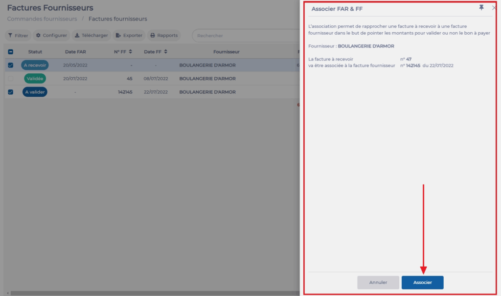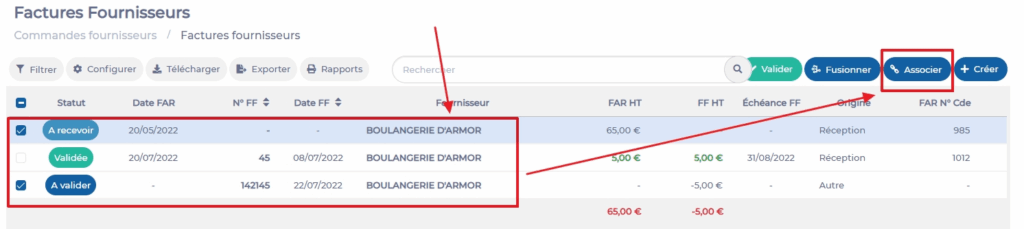 The association is complete, the ITR as well as the SI are now linked. You can now proceed to reconcile the invoices, as indicated in the article Reconcile an ITR and a SI to identify any anomalies, to then change the invoice status to "Validated" or "In dispute".