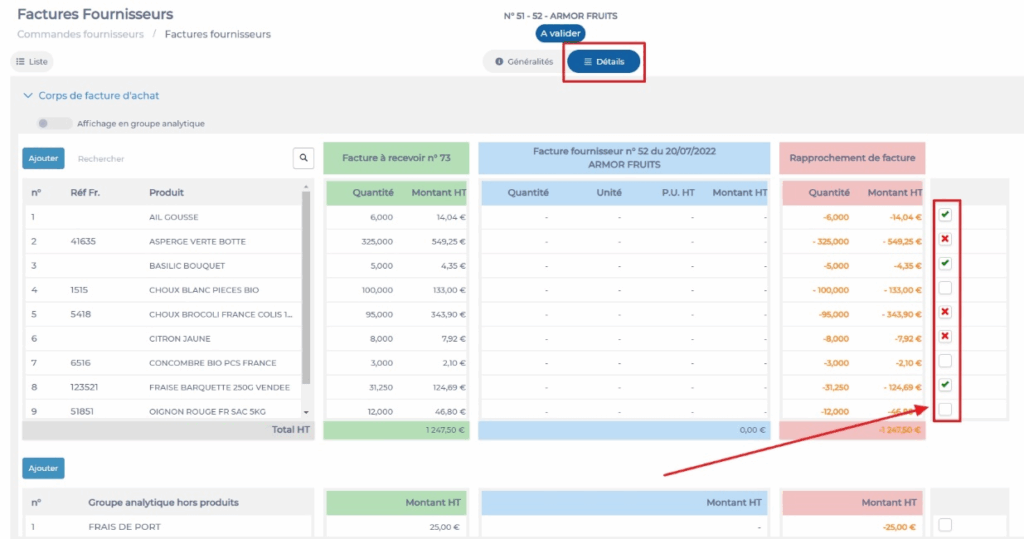 Matching two invoices ITR (Invoice to Receive) and SI (Supplier Invoice) corresponds to line-by-line checking to verify the invoice’s compliance. To proceed with the match, the ITR and SI must be linked together.