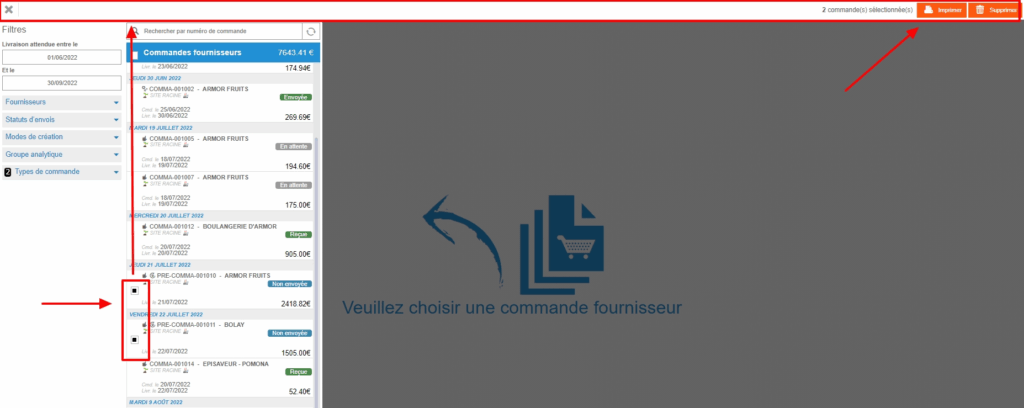 Note: If you forget to send the orders, even with the Send manually mode (which allows you to indicate to Easilys that you have sent an order by your own means, for example by phone), Easilys will not be able to generate a receipt.