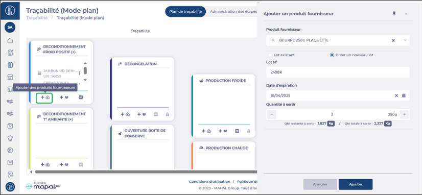 Add products or recipes to the steps they go through during the day, either by moving a batch from one step to another or by adding it from stock
