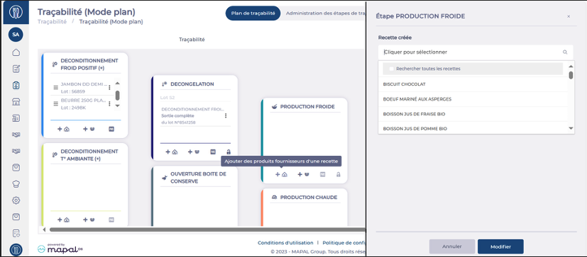 In Production-type steps, you must first indicate the recipe in which the product will be used at this step.