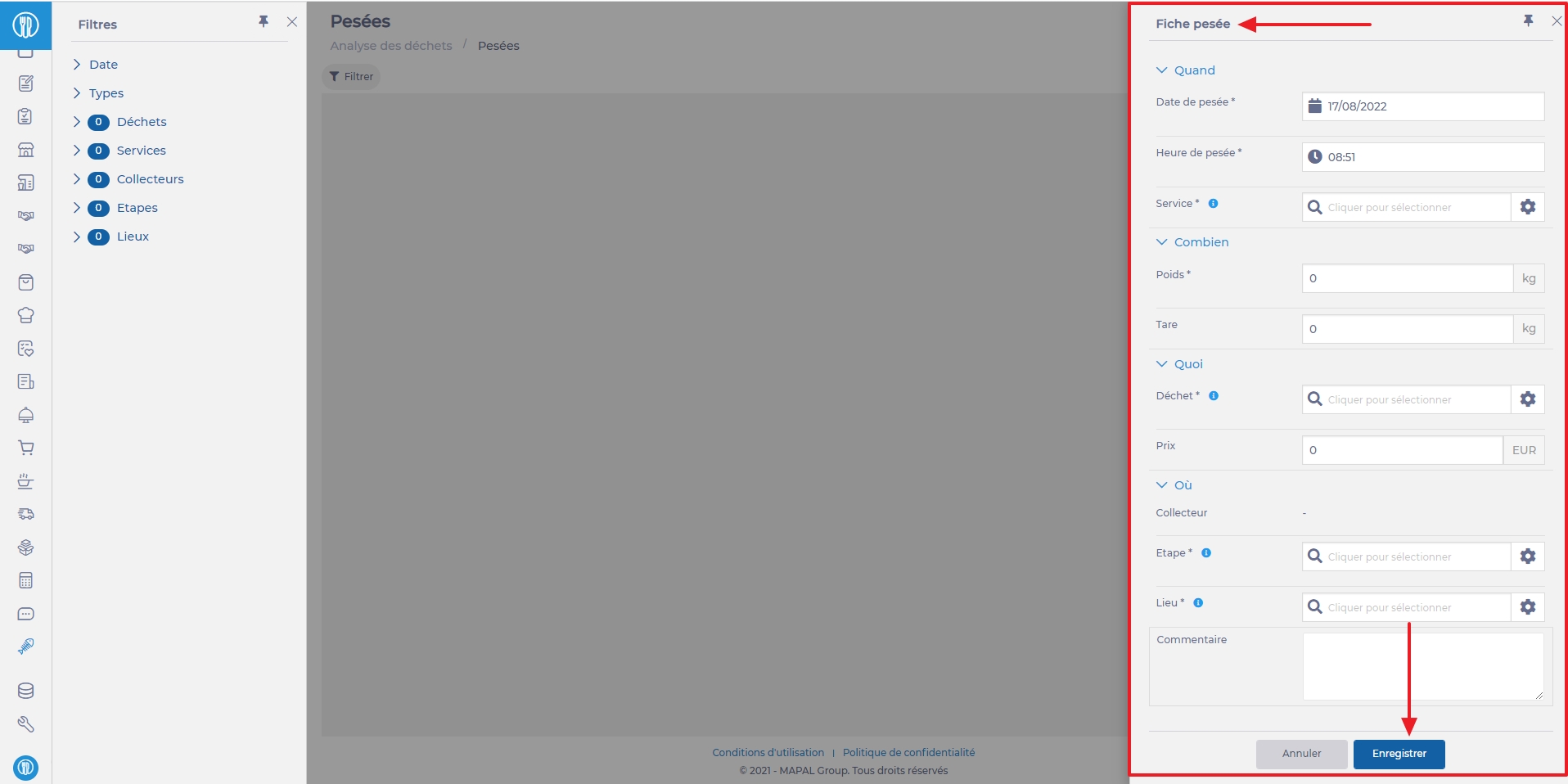 Overview : The WEIGHING screen is a weighing history screen. Here you'll find a list of manual weighing operations carried out from the same screen.