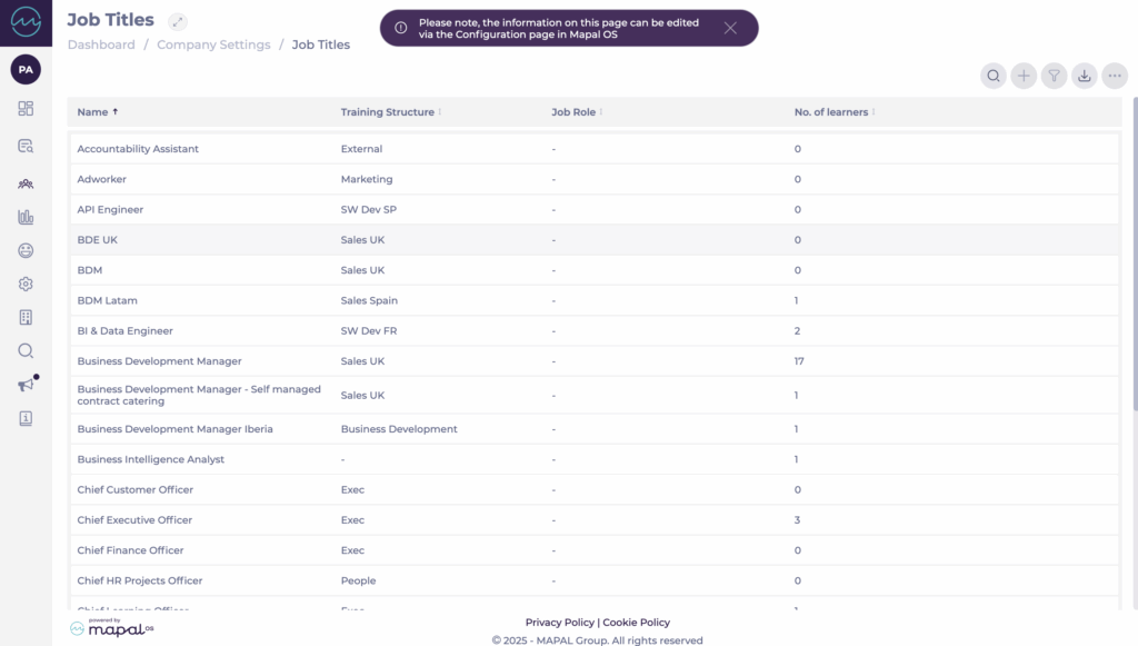 - Select the specific Job Title you want to assign the Training Structure to OR create a new job title.