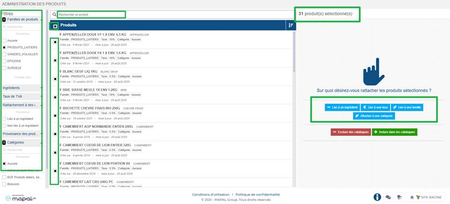 - Marca en la lista los productos a modificar, ya sea uno por uno o mediante la casilla de selección múltiple.