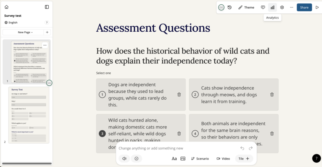 - En el editor, selecciona Analíticas (icono de gráfico).