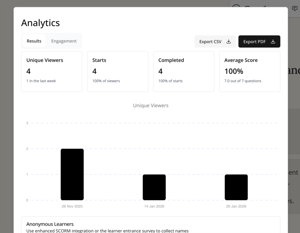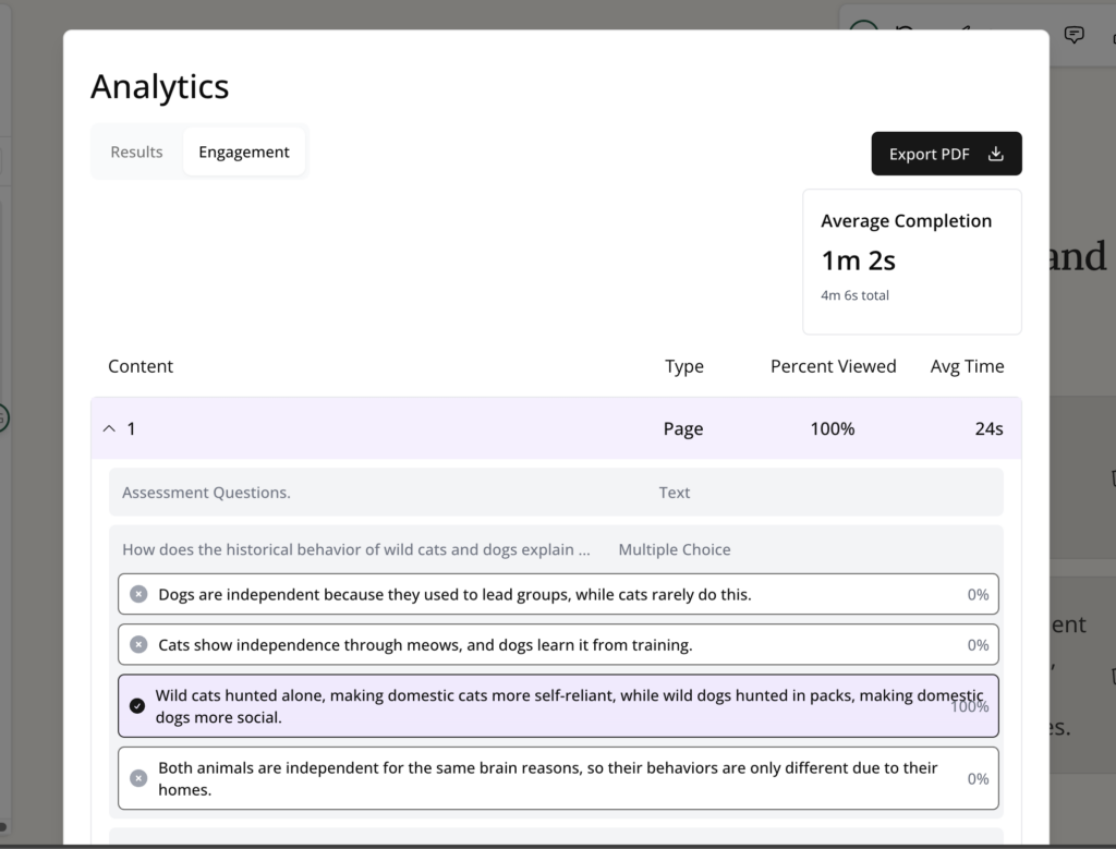 - Selecciona Exportar PDF para descargar el informe de participación en PDF.