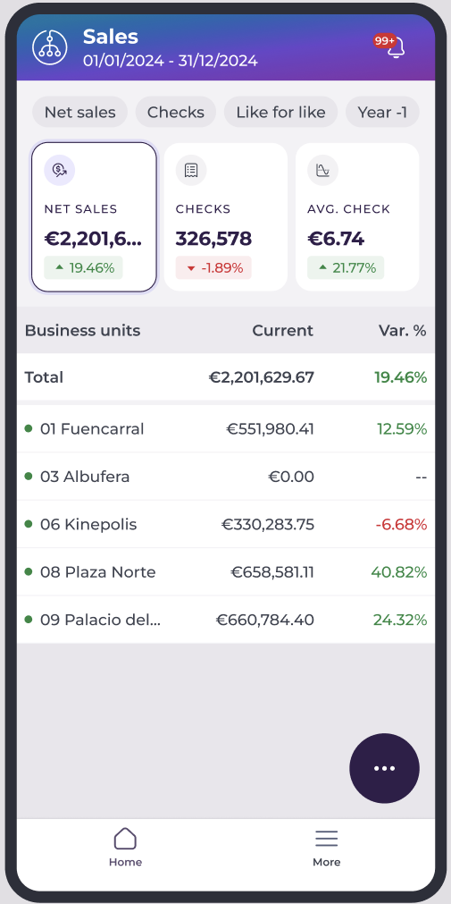 - Desde la pantalla de inicio de Ventas, selecciona el botón Más opciones.