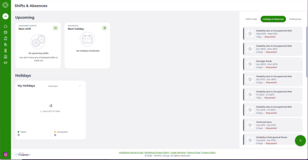 Los responsables ven la solicitud en la sección Ausencias de la aplicación Workforce y pueden revisarla, editarla o eliminarla. Para más información, consulta Registrar incidencia de absentismo en Workforce App.