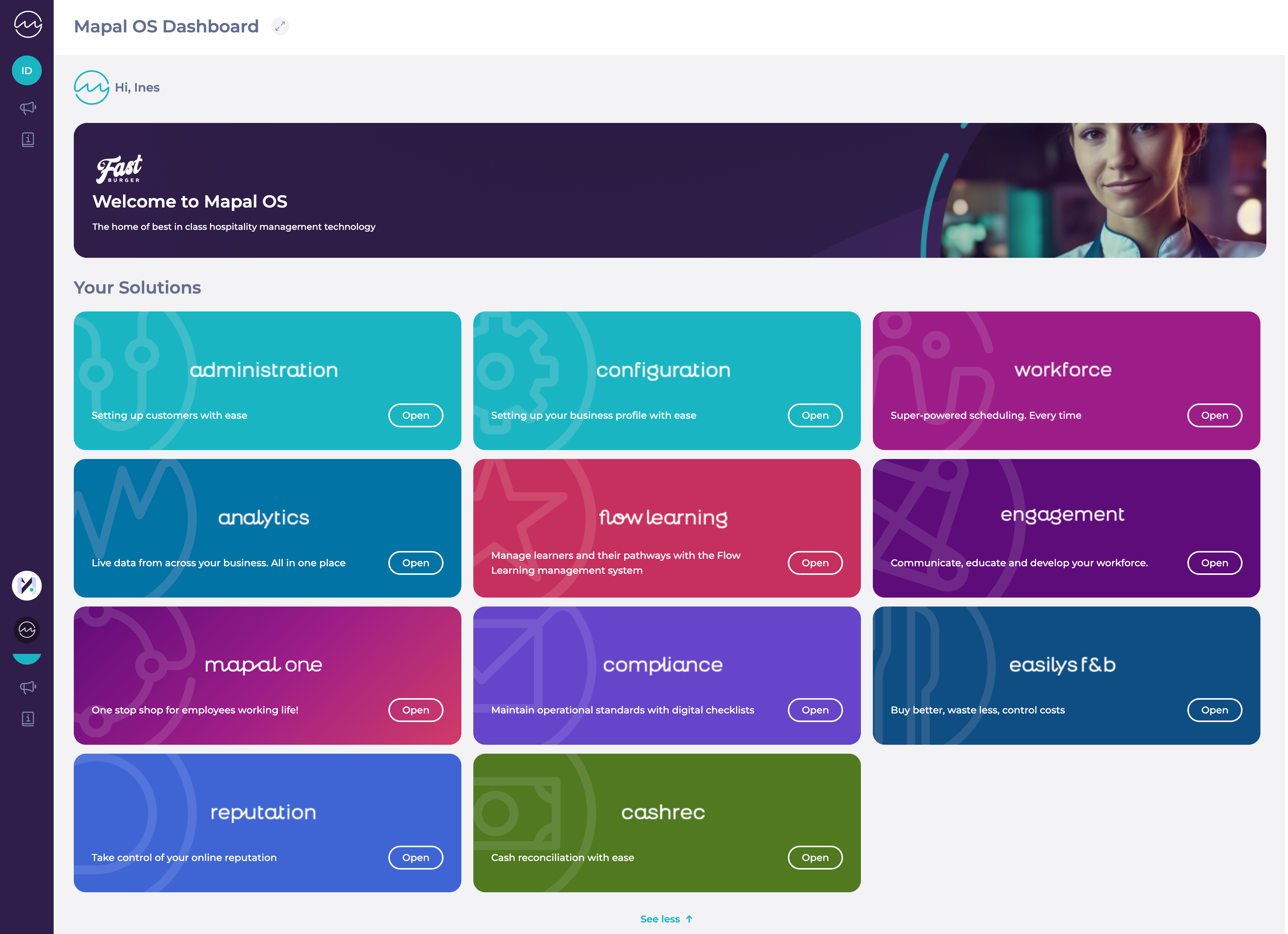 Observaciones: a medida que desarrollamos el panel de control de Mapal OS, tendrás acceso a todos los demás productos de Mapal (si es que tu empresa los utiliza) desde este mismo panel.