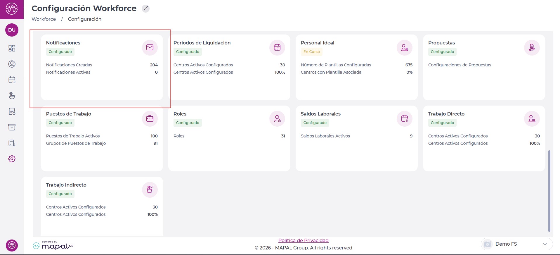 Nota: Cada usuario recibirá las notificaciones que correspondan según la configuración, únicamente de los centros que tenga visibilidad como usuario.