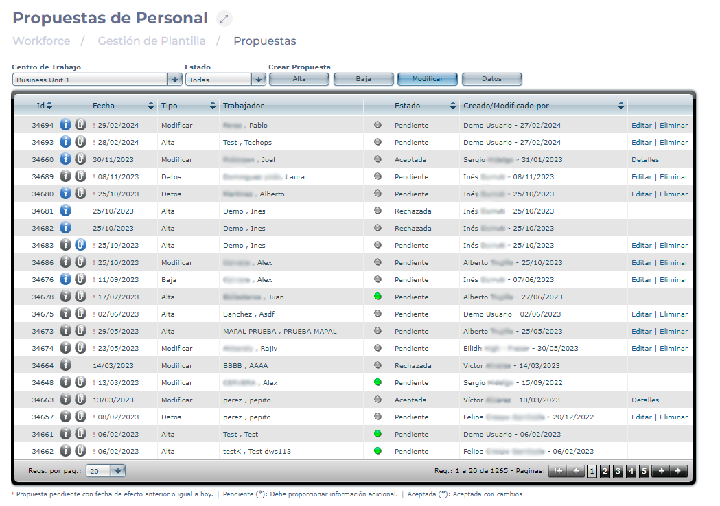 - Selecciona Gestión de Plantilla > Propuestas del menú principal.