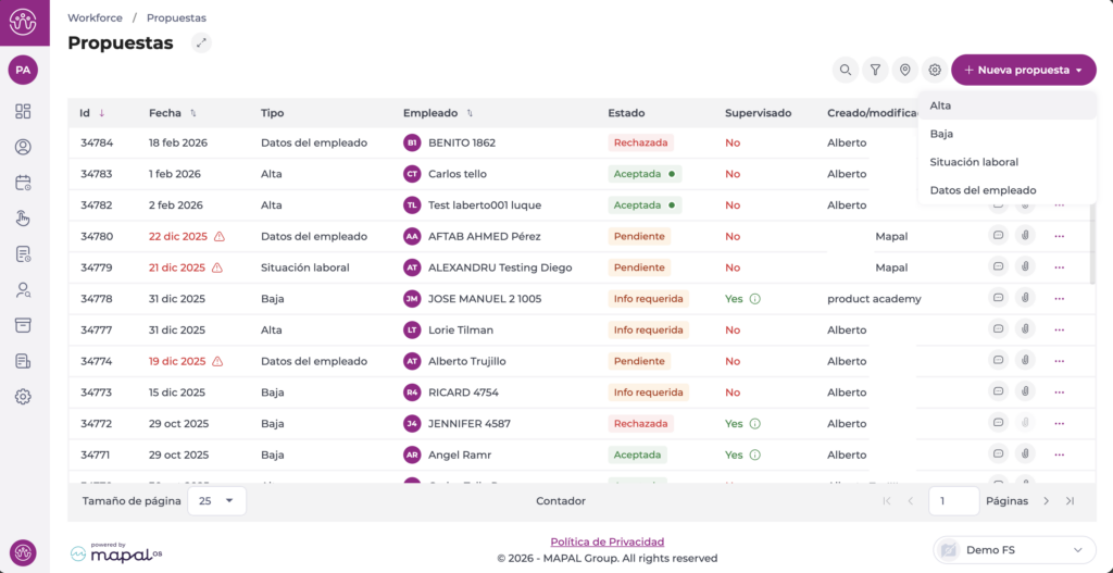 - Navega a Gestión de plantilla > Propuestas 2.0.