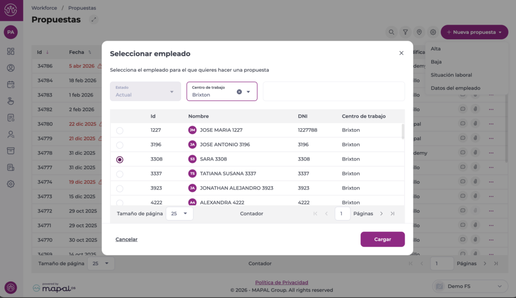 - Navega a Gestión de plantilla > Propuestas 2.0.