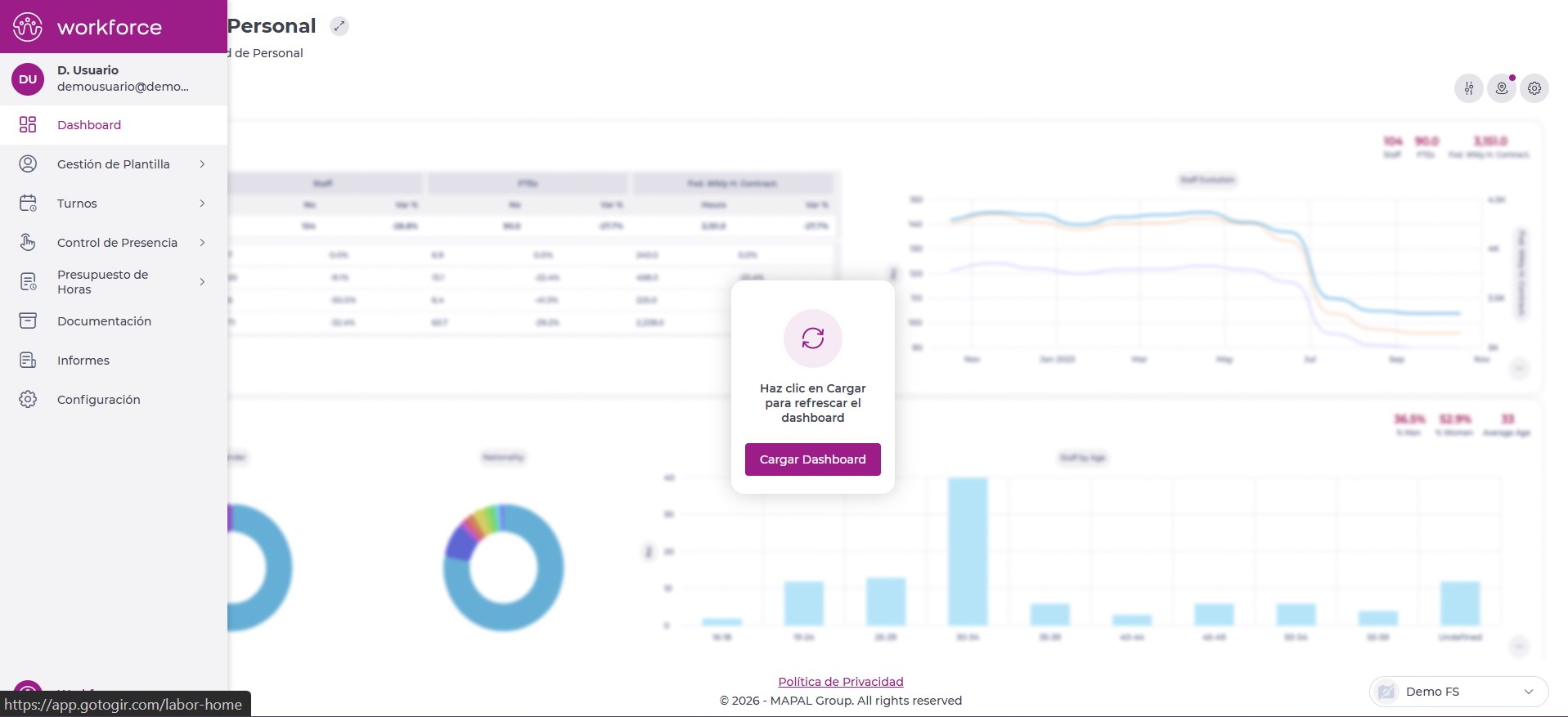 Empieza desde: el Panel de control (Dashboard) de Workforce.