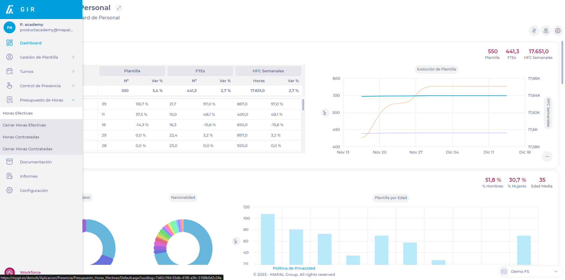 Horas reales: las que se registran mediante el marcaje por huella dactilar del Empleado.