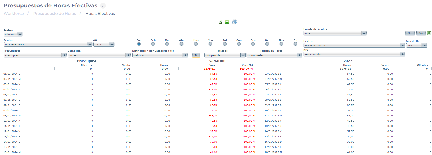 La Unit y el año para los que se va a crear el Presupuesto de Horas Efectivas.