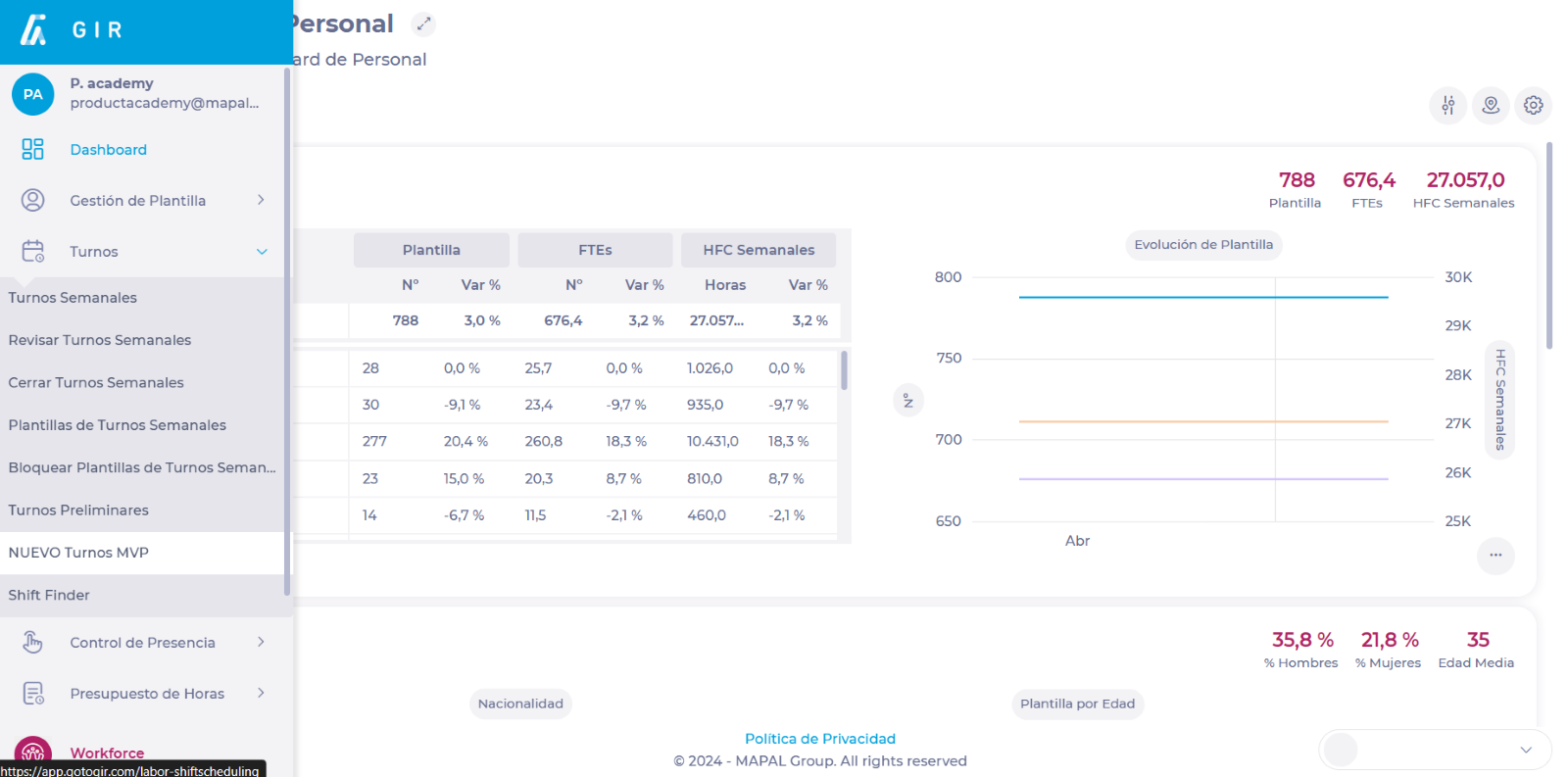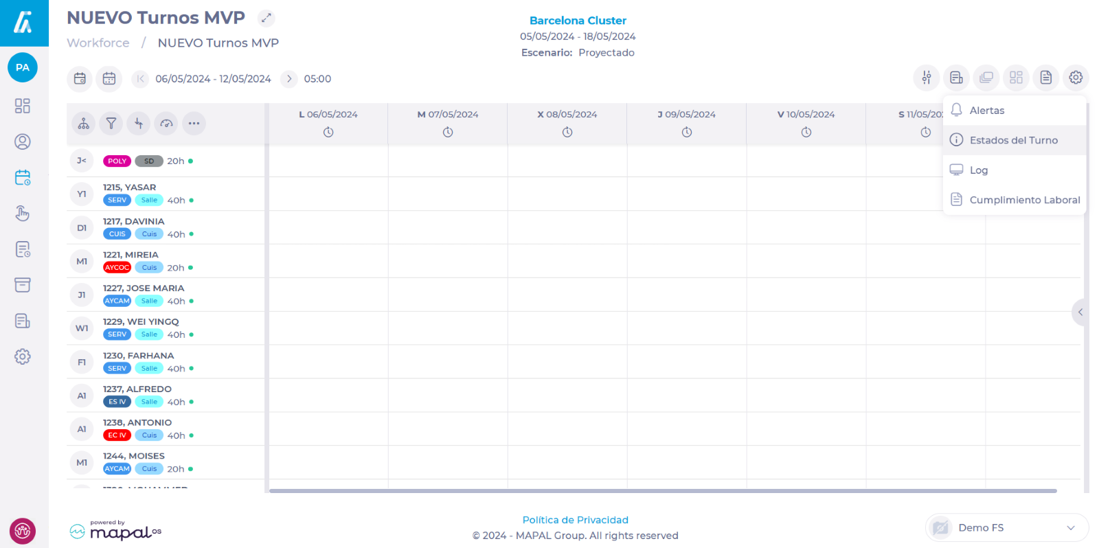 Selecciona Turnos > NUEVO Turnos MVP del menú principal.
