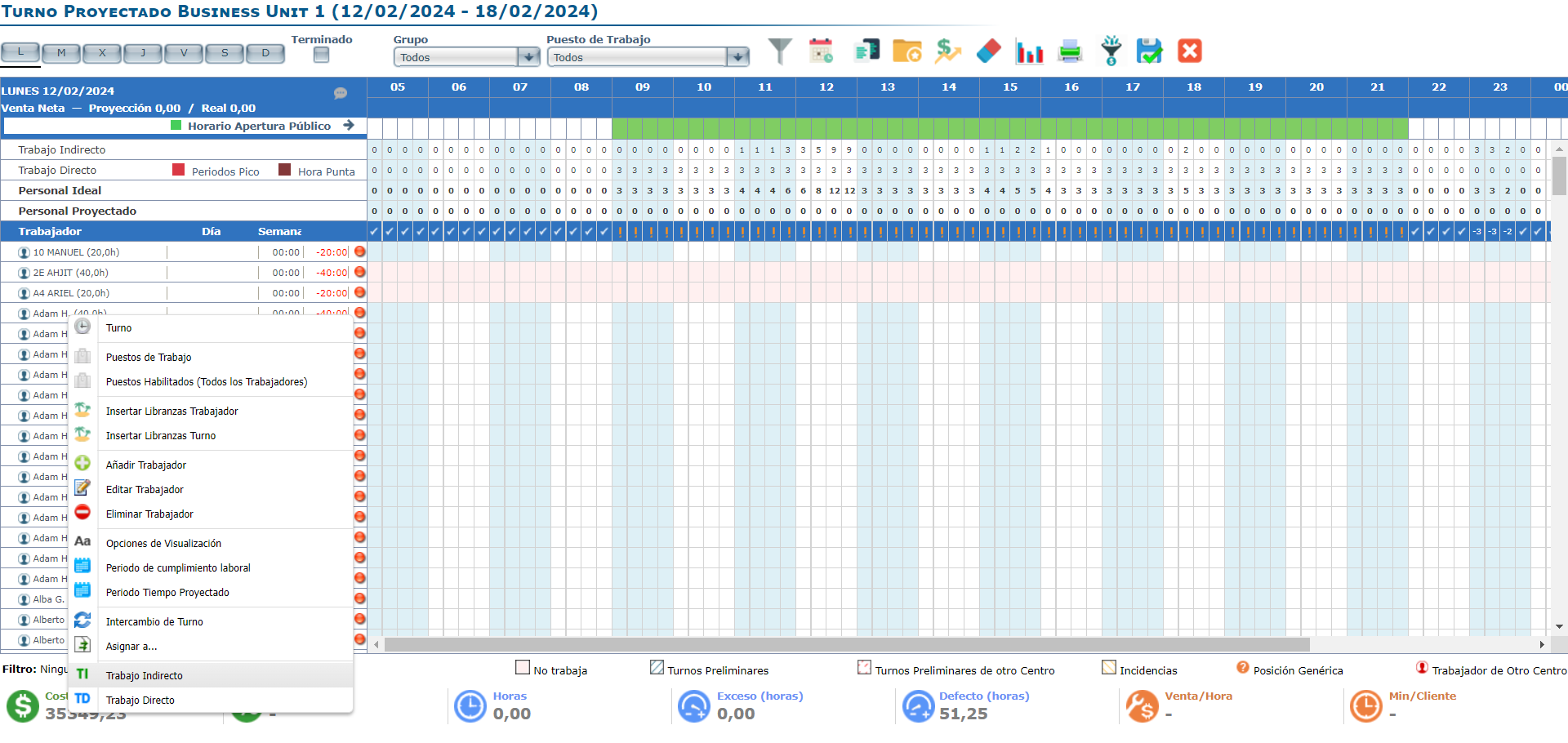 In this table, you will be able to view the Indirect Labor configured as follows: