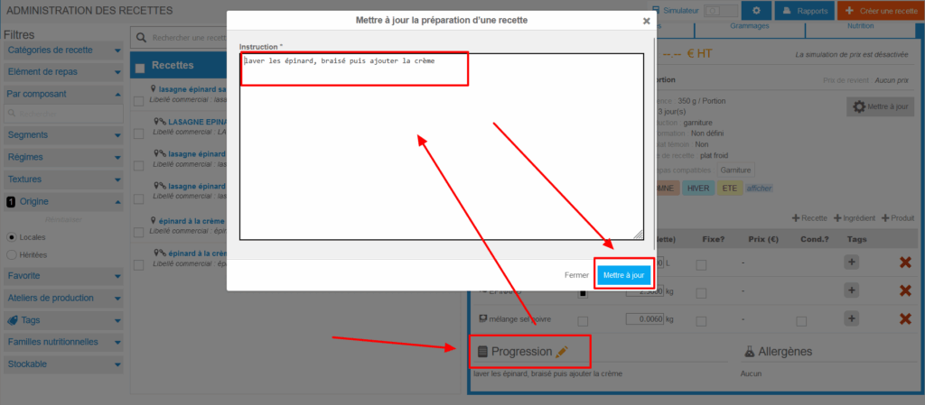 - In a menu box containing a recipe, select the small box visible at the bottom right.