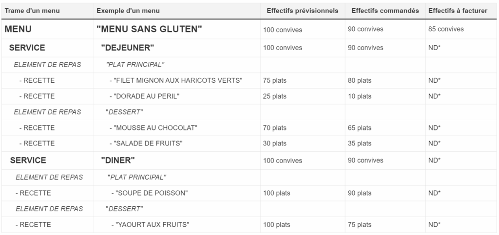 Complete the projected and/or actual forecasting of a menu
