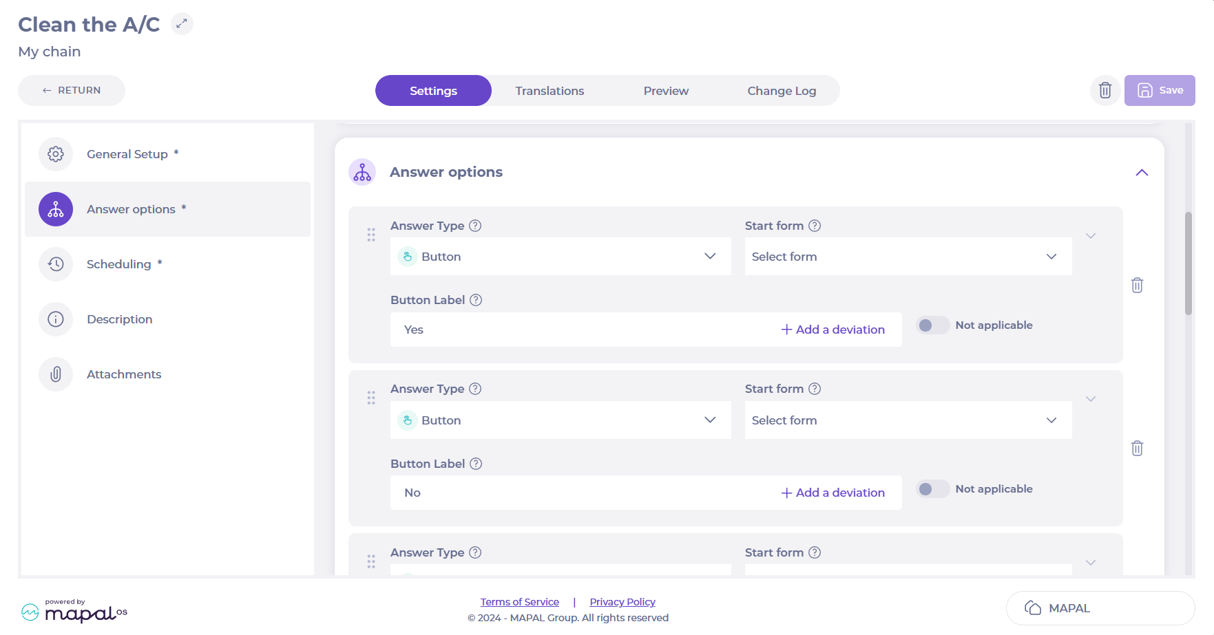 Areas/checklists > Edit