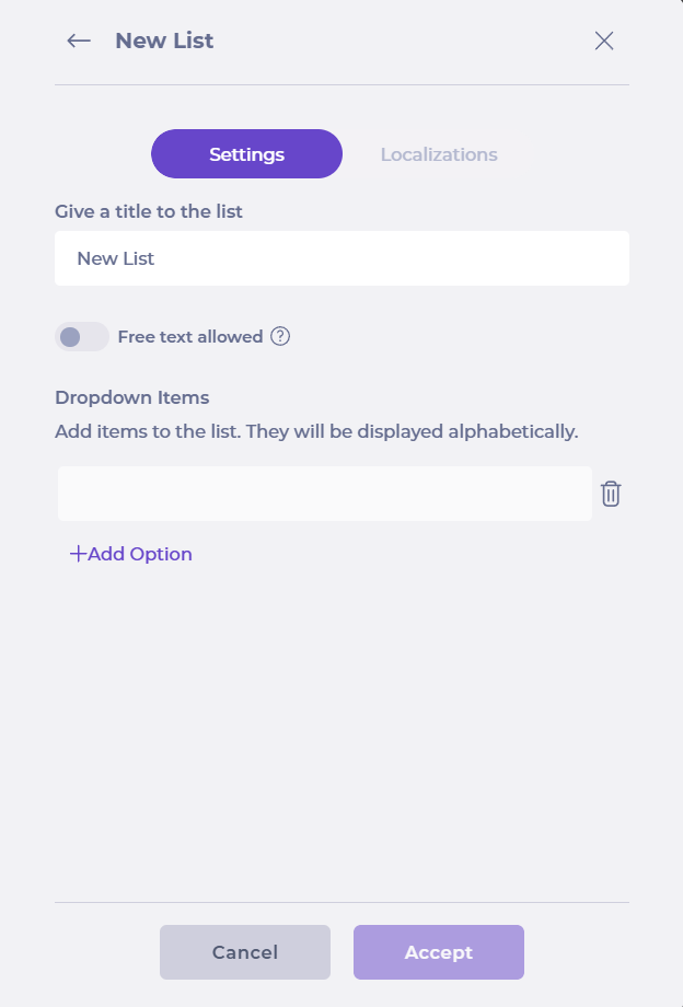 Switch the Multi-language toggle on to provide translated versions of the dropdown - these will appear depending on the user's language settings.