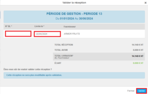 - Sélectionnez les onglets Commandes fournisseurs > Réceptions.