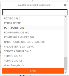 - Trouvez le produit que vous souhaitez ajouter et sélectionnez le dans la liste des correspondances. S'il n'existe pas, créez le depuis vos mercuriales.