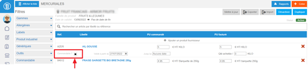 - Accédez à la liste de vos produits dans la mercuriale concernée.