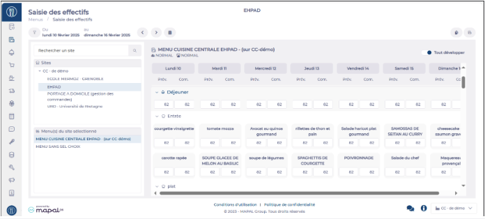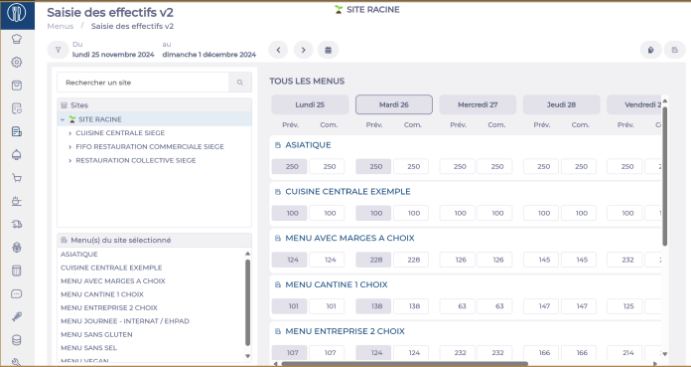 - You will then see in the central table the daily quantities for each menu template of this site.