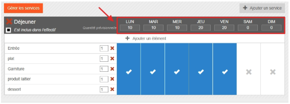It is possible to indicate forecasted headcounts when creating a menu template. This way, the application always pre-fills these forecasted headcounts by default.