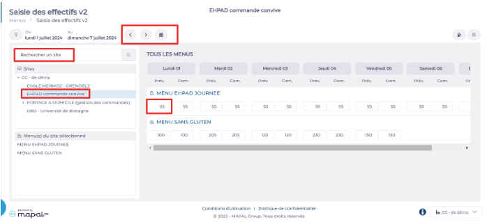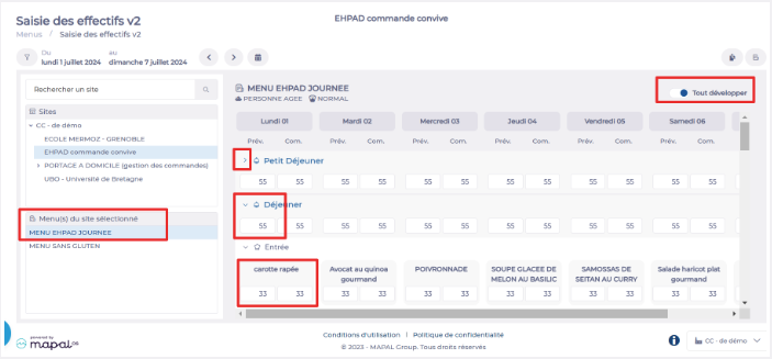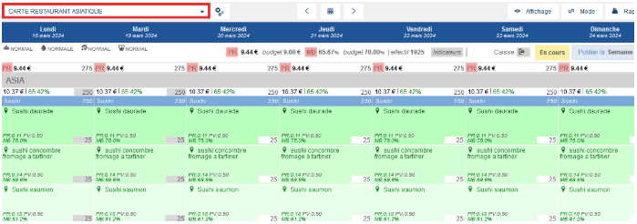 It is possible to modify forecasted and actual headcounts manually directly from the menus by selecting the headcount box at the bottom right of each recipe added in the menu.