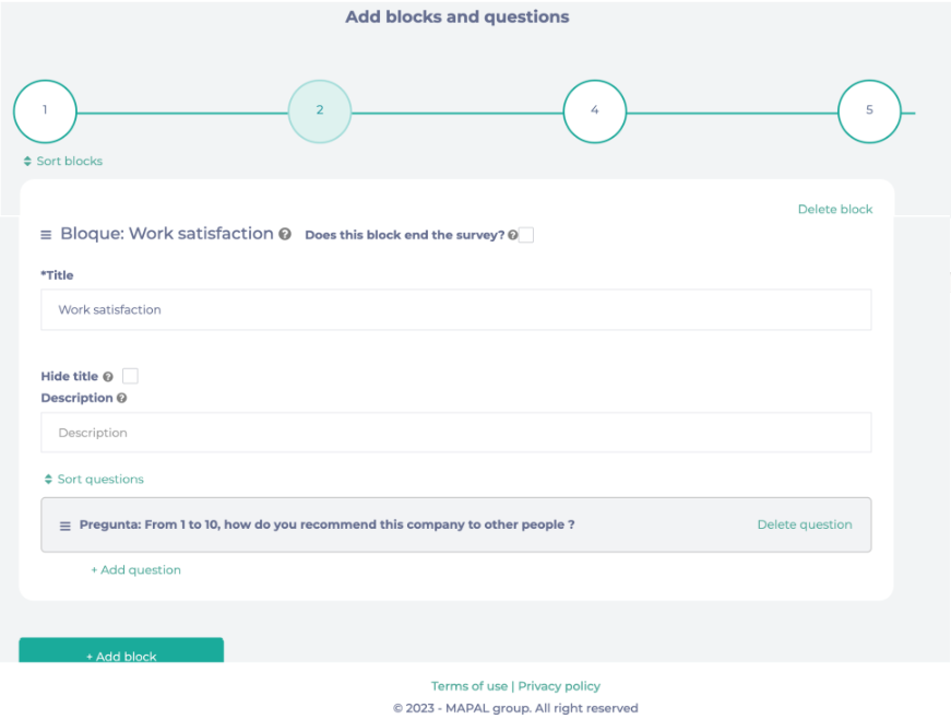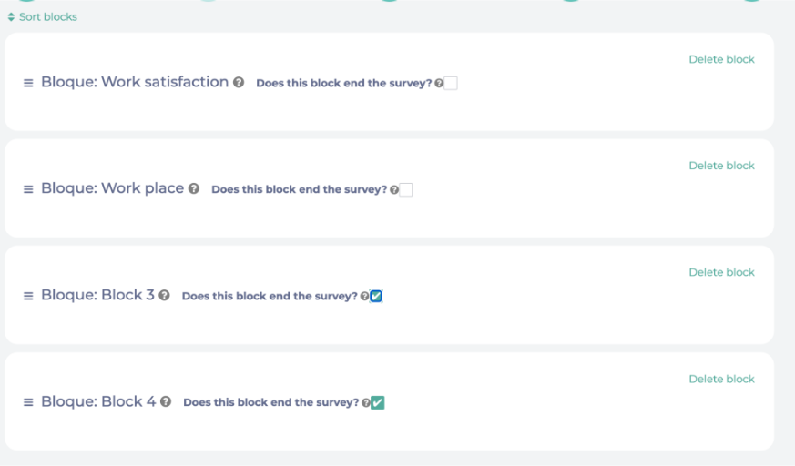 Vous pouvez ajouter autant de blocs et de questions que vous le souhaitez. Nous recommandons de simplifier au maximum les enquêtes.