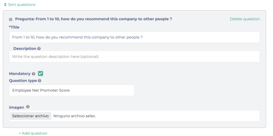 - Score de promoteur net des employés : les utilisateurs se voient proposer une échelle standard de 1 à 10 (qui peut être utilisée comme un score de promoteur net, mais aussi comme toute autre question à laquelle il faut répondre sur une échelle de 1 à 10).