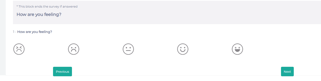 - Sélectionner un visage : les utilisateurs se voient présenter une gamme standard de visages de 1 à 5 parmi lesquels ils peuvent choisir, ce qui permet de mesurer leur sentiment par rapport à la question posée.