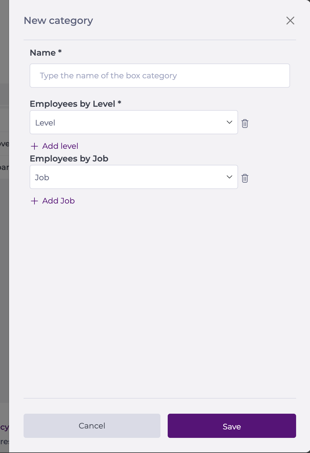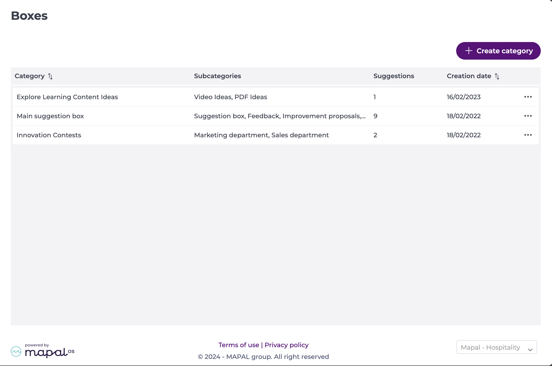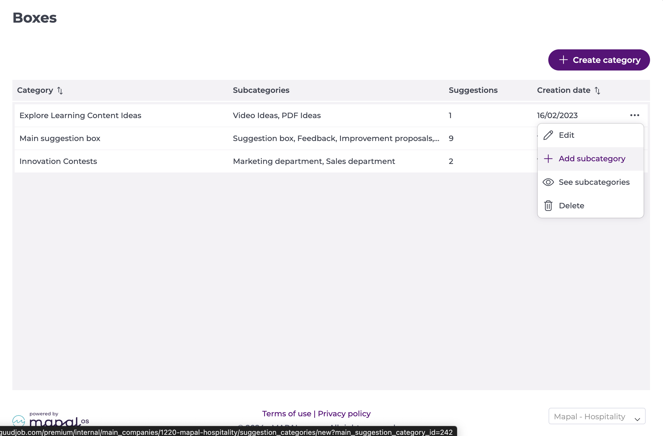 - Sélectionnez Boîtes (Boxes) > Créer une catégorie (Create category).