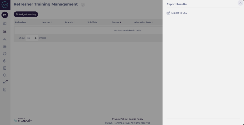 Vous pouvez également attribuer une formation de remise à niveau directement depuis l’écran Gestion de la formation de remise à niveau en utilisant Attribuer une formation. Pour plus d’informations, consultez Attribuer une formation.