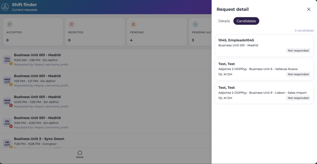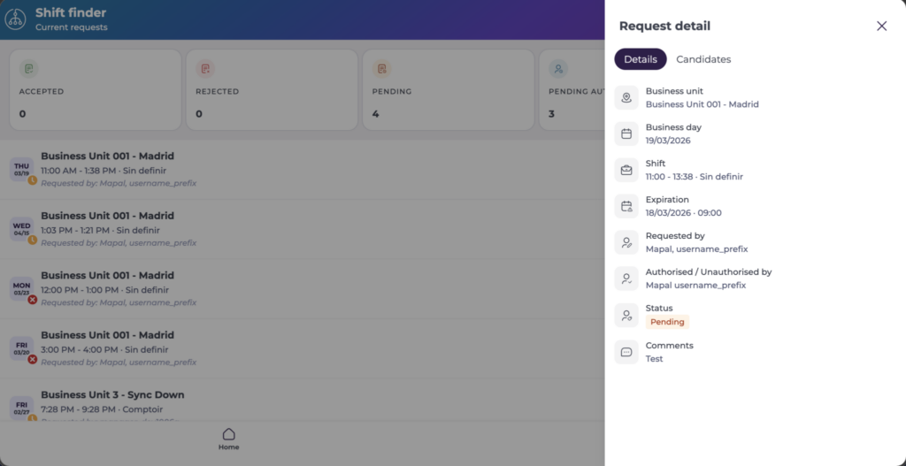 - Sélectionnez une demande de shift existante dans la liste.