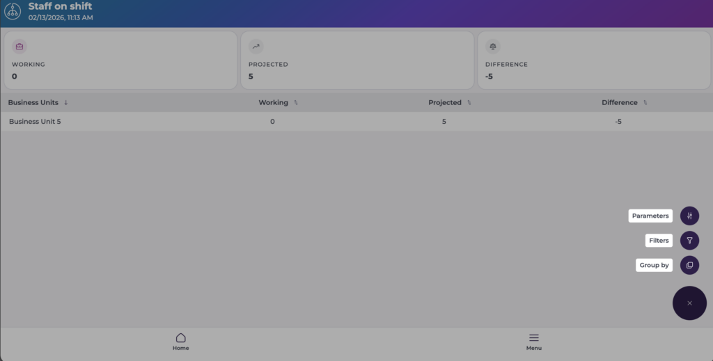 - Accédez à Personnel en poste. Sur cet écran, vous pouvez voir :