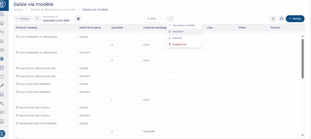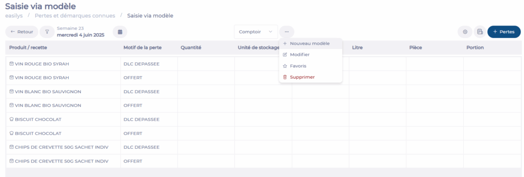Known product and recipe losses can be entered either directly or by using loss templates (see the article Manually record known losses and markdowns for more information).