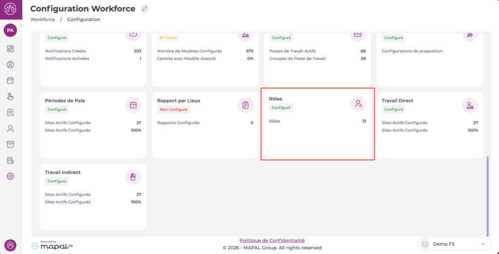 - Accédez à Configuration > Rôles.