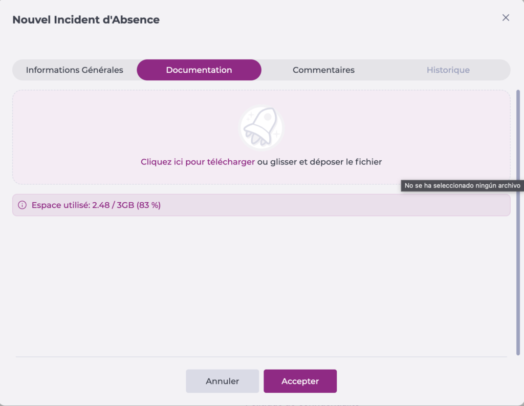 - Documentation : ajoutez les fichiers liés à l'incident le cas échéant.